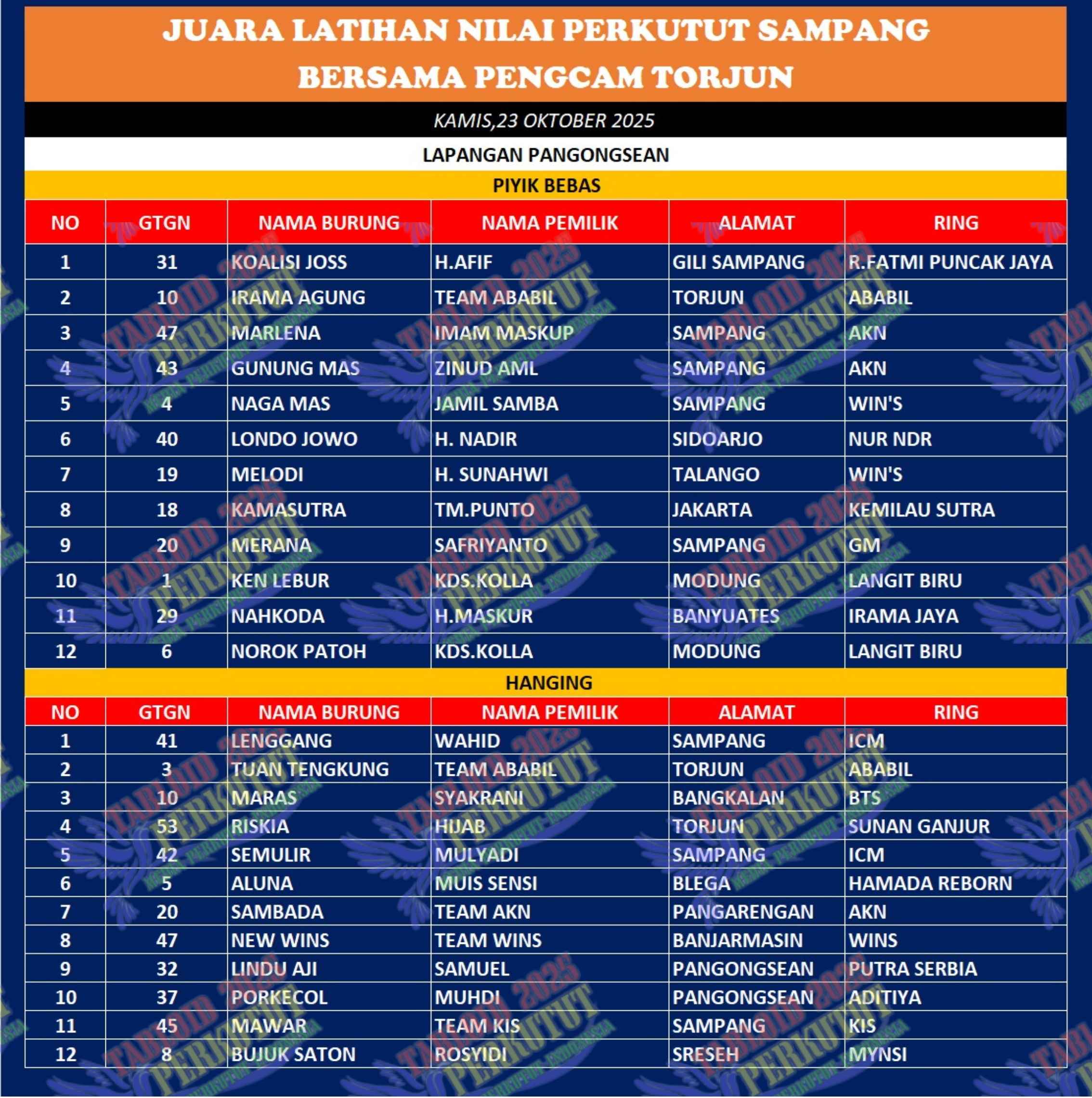 www.tabloidperkutut.com.ǁSampang,23 Oktober 2025-Lapangan Pangongsean, Kecamatan Torjun, Kabupaten Sampang, menjadi pusat perhatian para pecinta burung perkutut pada gelaran Latihan Nilai Perkutut Sampang bersama Pengcam Torjun yang berlangsung meriah. Kegiatan ini tidak hanya menjadi ajang adu prestasi bagi perkutut-perkutut terbaik, tetapi juga menjadi sarana mempererat tali silaturahmi antar penghobi dan komunitas pecinta perkutut di Madura.